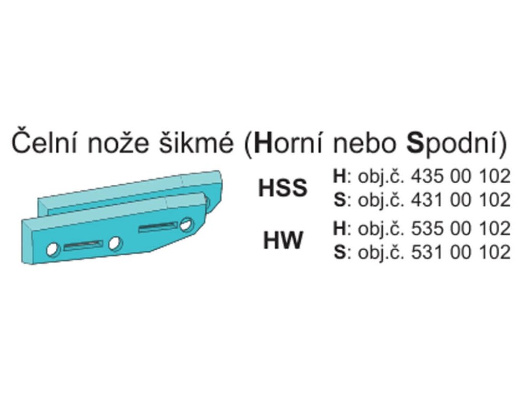 Výměnný čelní nůž s profilem „šikmý“ z tvrdokovu (HSS) pro výplňovou frézu VP-60 se spodním braním. Poskytuje velmi čistý, dekorativní profil bez vytrhávání v měkkých i tvrdých dřevinách, s dlouhou životností a rychlou výměnou.