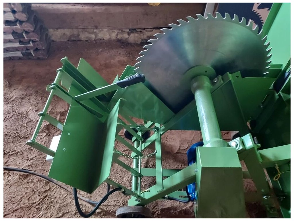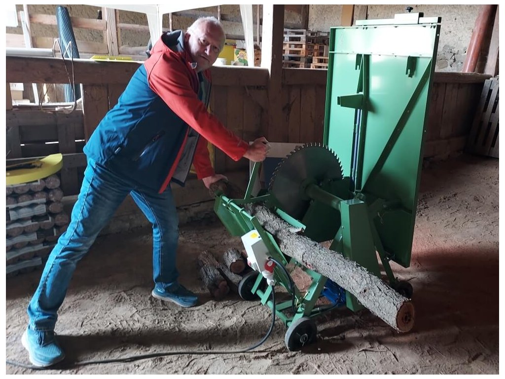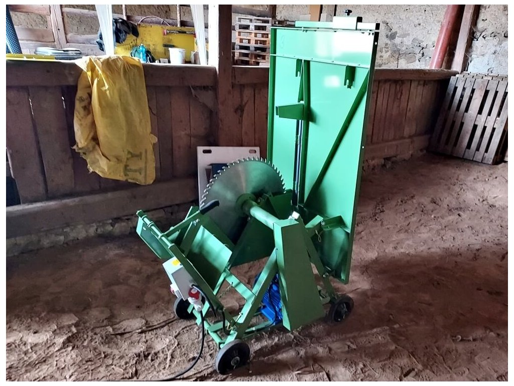 - Po odklopení stolu umožňuje kyvná kolébka řezání palivového dřeva od 30 mm do maximálního průměru 220 mm.