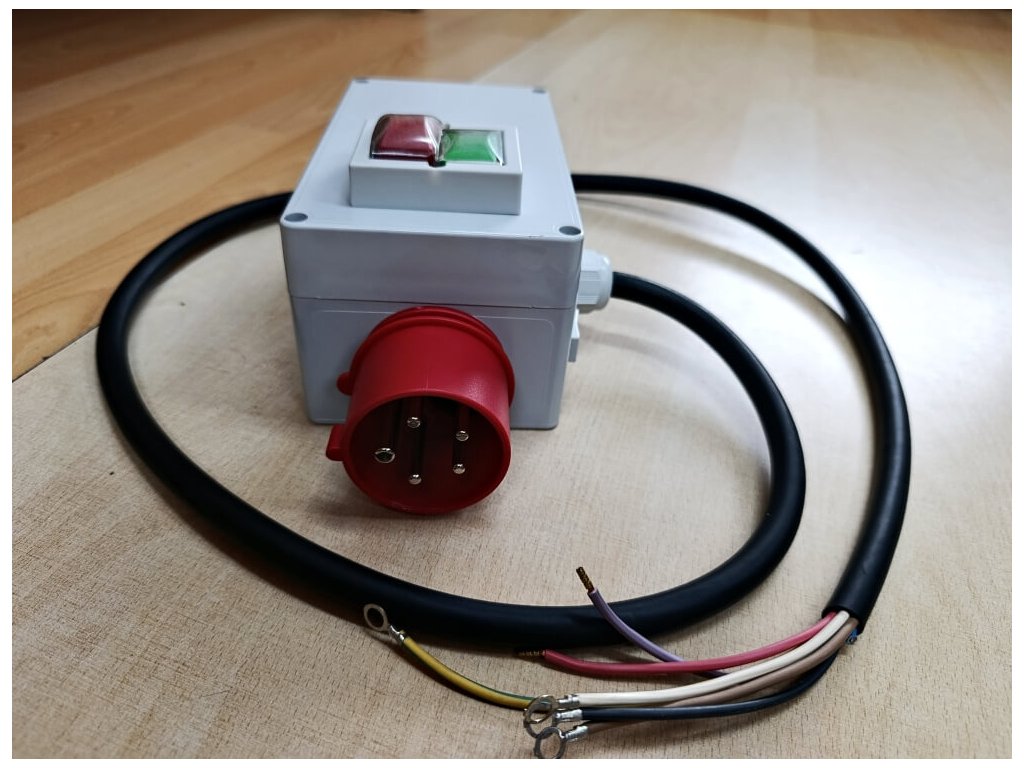 - Připojovací zásuvka je pevně umístěna na konstrukci stroje 16 A pětikolík.