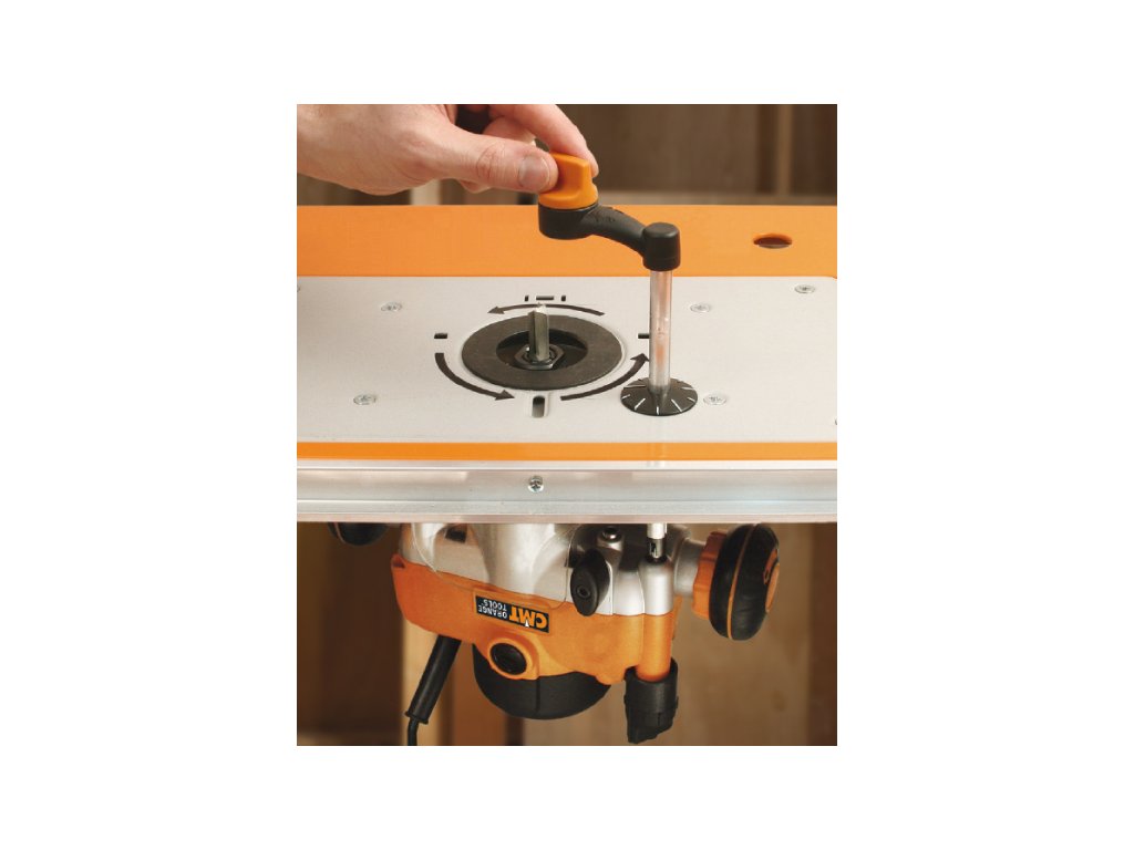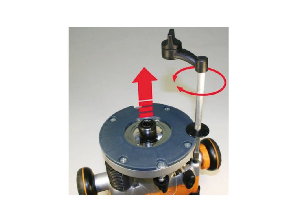 U obou typů CMT frézek lze nastavit výšku frézování ve frézovacím stolku shora pomocí ruční kliky.