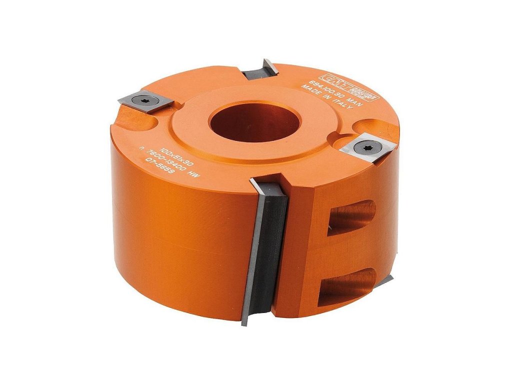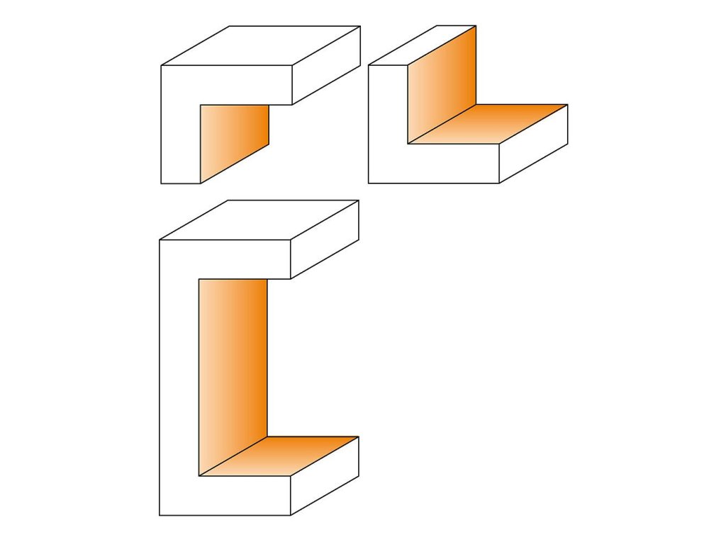 Frézovací hlava se střídavě šikmými zuby, které zaručí mnohem čistší řez i při použití rychlejšího posuvu než u fréz se zuby rovnými. Fréza je osazena 4 předřezovými žiletkami pro precizně odfrézované rohy bez otřepů v polodrážkách či drážkách a 2 uběrací šikmé zuby.