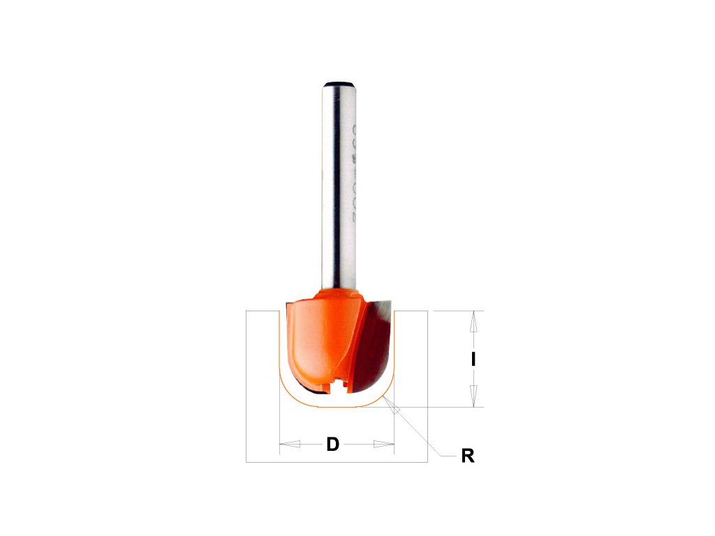 Použití: Ideální pro výrobu misek, žlábků krabiček, řezání desek nebo pro jiné speciální a umělecké předměty. Oblý roh frézy vytváří vnitřní rádius, zatímco boky a spodek vytvářejí hladké rovné povrchy.
