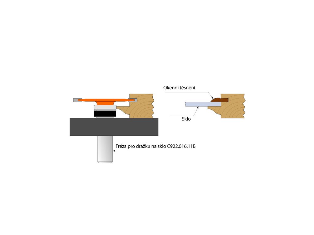 Ekonomicky výhodná sestava fréz obsahuje 3 kusy fréz – profil a kontraprofil pro rám výplně a frézu pro drážku na sklo.