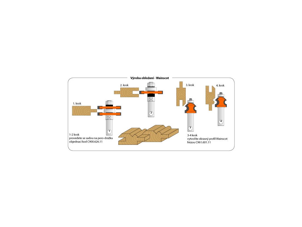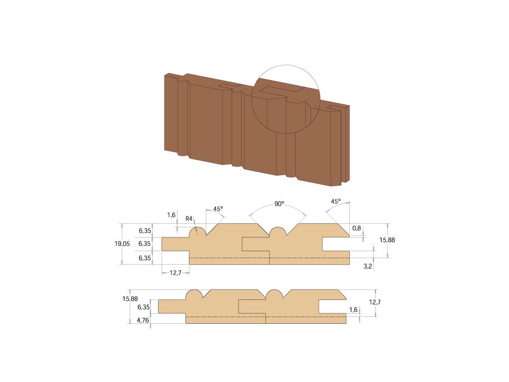 Zcela nová fréza je určena pro výrobu dekoračních obkladů interiérů. Jednoduše vytvoříte spoj na pero-drážku s okrasným rádiusem R4mm. Ideální pro výrobu obkladů stěn, stropů a zadních částí knihoven nebo skříní.