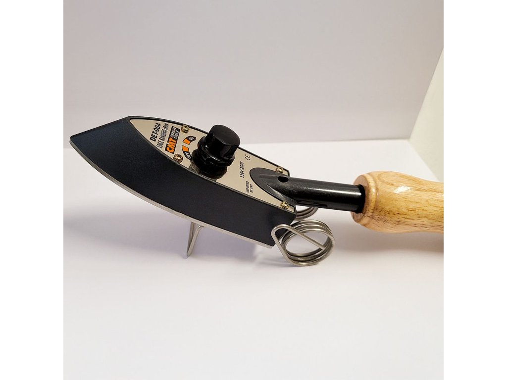 Žehlička pro jednoduché olepování nažehlovacích hran s lepidlem. Nepřilnavý povrch umožňuje pohodlnou aplikaci bez připékání a poškození hrany. Termostatické nastavení požadované teploty v rozmezí od 70 do 180 oC. Dodáváno s kovovou podložkou pro odložení horké žehličky.