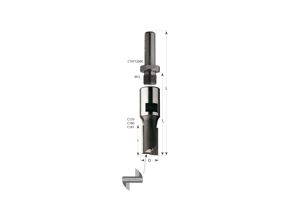 Drážkovací fréza se závitovým upínáním je ideální pro frézování hlubokých otvorů, závěsů na bezfalcových dveřích pomocí šablony a jiného stavebního kování. Ve spojení s upínací stopkou C797 pro upnutí v 12 mm kleštině dosahují prodloužené hloubky řezu až 132 mm. Díky HM břitům jsou vhodné na masiv, dřevěné kompozity, plasty a lamináty. Může být používána na obrábění v CNC frézách a ručních frézkách. Upínací stopku pro upnutí v kleštině je nutno objednat zvlášť.
