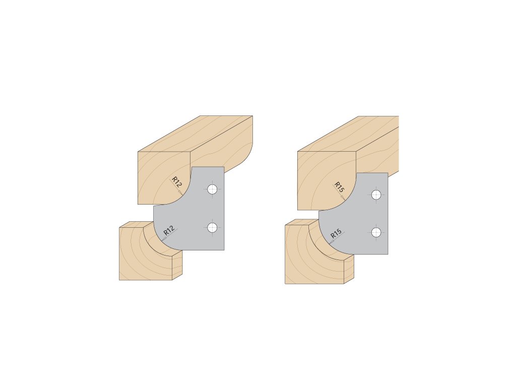 Fréza se používá pro vytváření vnitřních a vnějších radiusů-zaoblení. Fréza je osazena dvěma radiusovýma žiletkama s vydutým a vypouklým radiusem R10. Další radiusy R12 a R15 lze doobjednat. Pro zaoblování a profilování hran desek a dílů z měkkého a tvrdého dřeva. Pro frézování zakřivených dílů je možné k fréze osadit kopírovací ložisko. d = 30, 40 nebo 50 mm.