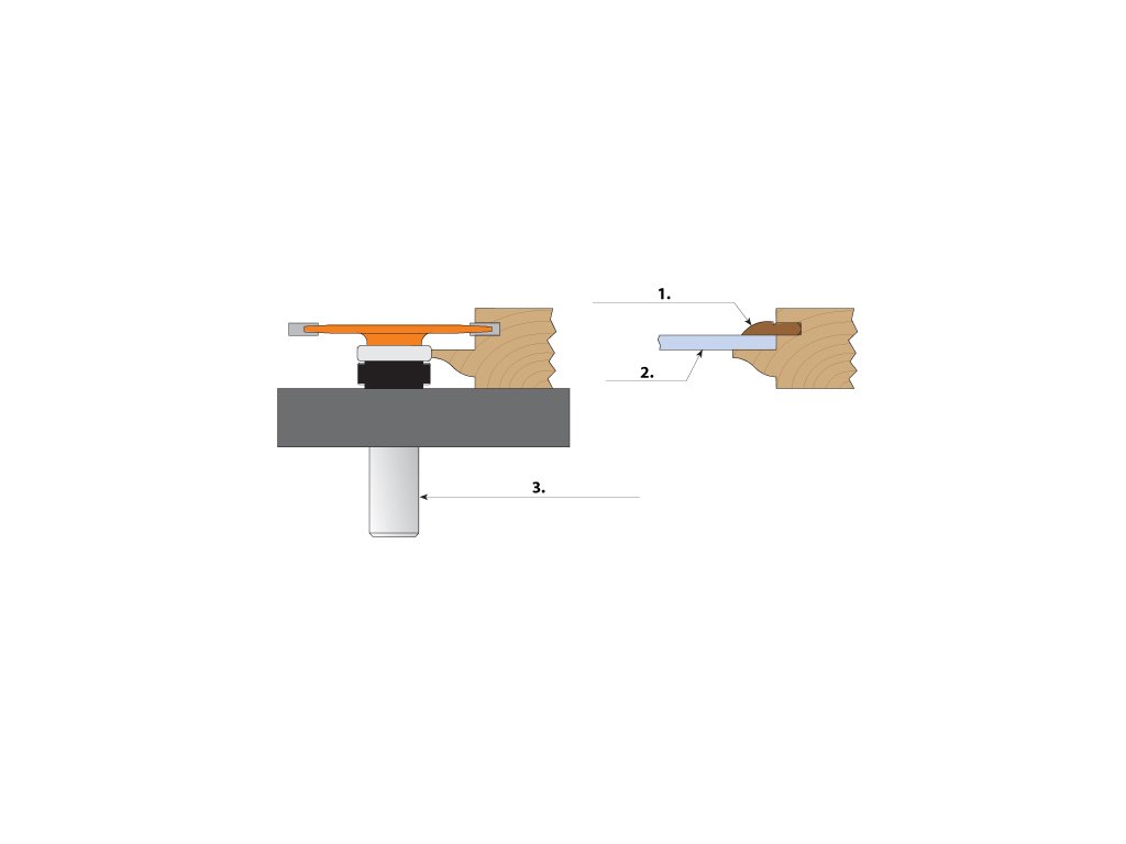 Nejprve vyfrézujte profil a kontra-profil pro vodorovné a svislé vlisy. Pak použijte frézu pro drážku na těsnění skla. Ložisko opřete o okraj hrany. Vodorovné vlisy můžete frézovat po celé délce. Svislé vlisy nefrézujte až do konce, označte si referenční body podle šířky vlisů, tak aby zůstaly skryty v horní a spodní části dvířek nebo dveří. Naše unikátní těsnící přídržné lišty perfektně zapadají do vytvořených drážek frézou ze sady C85580311. Balení obsahuje 762 cm těsnící lišty.