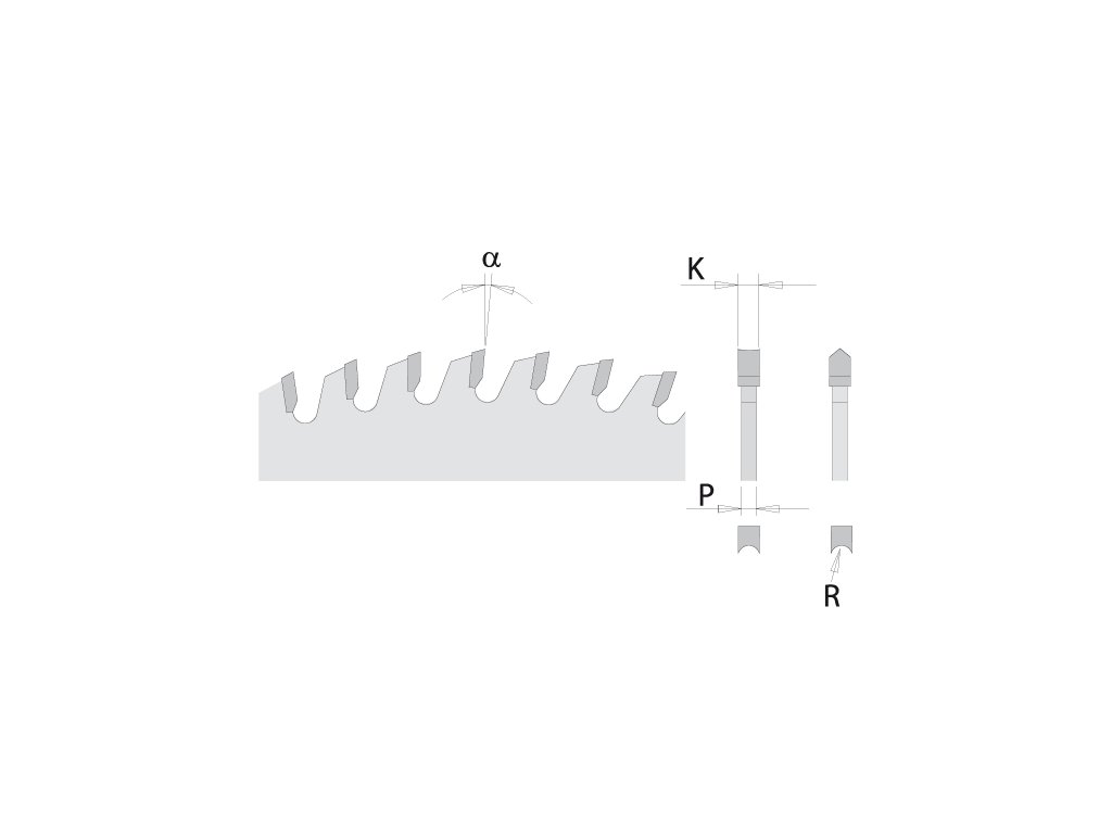 Nový standardní kotouč s vydutými zuby pro jemný a čistý řez oboustranně povrchově upravených materiálů, jako lamina nebo dýhy, na kotoučových nebo vertikálních pilách (např. Striebig, Holzher) bez předřezu. Pro lamino, DTD, MDF, překližku a příčné řezy dřeva.