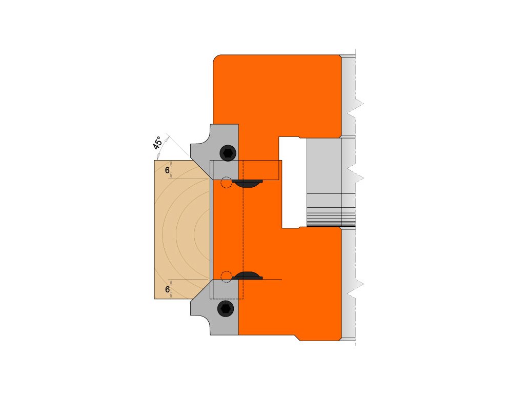 Do frézy lze upnout pět různých radiusových žiletek, takže můžete zaoblovat na jeden průchod jak horní, tak spodní hranu s rádiusem 2, 3, 4, 5 a 6mm a nebo srážet hrany pod úhlem 45° v šířce 18 až 50 mm. Moderní design s axiálně uloženými zuby je zárukou dokonalé čistoty opracování! Frézovací hlavu můžete použít se svou spodní frézkou či na dvoustranných čepovacích strojích.