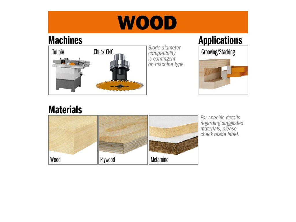 CMT drážkovací pilové kotouče mají zesílená těla pro perfektní řez drážky v měkkém a tvrdém dřevě, MDF a dřevotřísce. Jsou vyrobeny nejmodernějšími výrobními procesy, které zaručují vyváženost kotouče, přesnost naostření a dlouhou životnost ostří. Jsou vyráběny z kvalitních celosvětově ověřených materiálů a průběžně kontrolovány ve výrobním procesu.