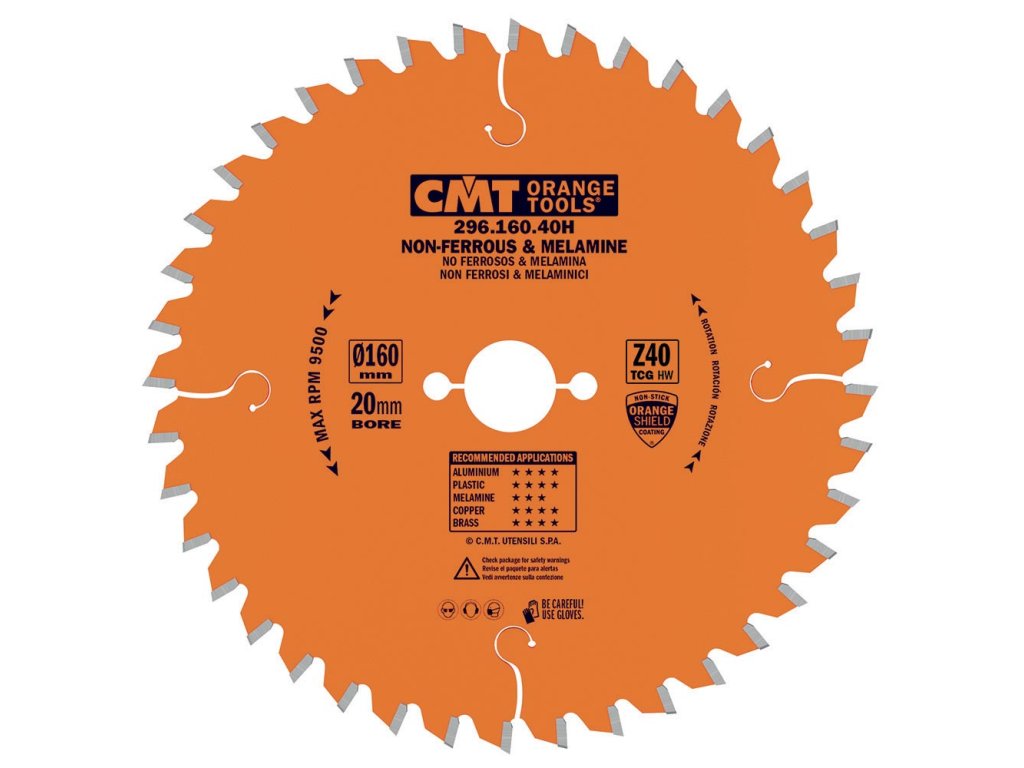 Pilový kotouč s negativním úhlem čela. Konstruován pro vysoký výkon, kvalitní řez a dlouhou životnost ostří. CMT kotouč pro neželezné kovy a plasty je ideální pro zkracovací, radiální a kotoučové pily. Použití pro řezání všech neželezných kovů a plastů, lamina a oboustranně povlakovaných desek melaminem. POZOR: Doporučujeme používat mazání emulzemi pro neželezné kovy a plasty.