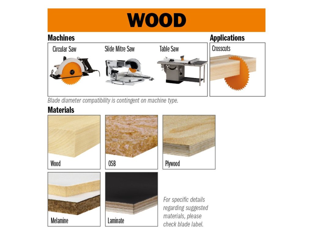 Standardní pilový kotouč s trapézovými negativ zuby pro extra jemný a čistý řez oboustranně povrchově upravených materiálů, jako lamina nebo dýhy, na kotoučových nebo vertikálních pilách (např. Striebig, Holzher) bez předřezu. Vysoká životnost tvrdokovových zubů. Pro lamino, DTD, MDF, překližku.