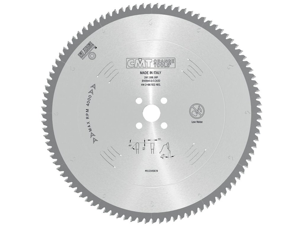 CMT Pilový kotouč na lamino, plast a neželezné kovy D450x3,8 d30 Z140 HM s negativním úhlem čela. Konstruován pro vysoký výkon, kvalitní řez a dlouhou životnost ostří. CMT kotouč pro neželezné kovy a plasty je ideální pro zkracovací, radiální a kotoučové pily. Použití pro řezání všech neželezných kovů a plastů, lamina a oboustranně povlakovaných desek melaminem. POZOR: Doporučujeme používat mazání emulzemi pro neželezné kovy a plasty.