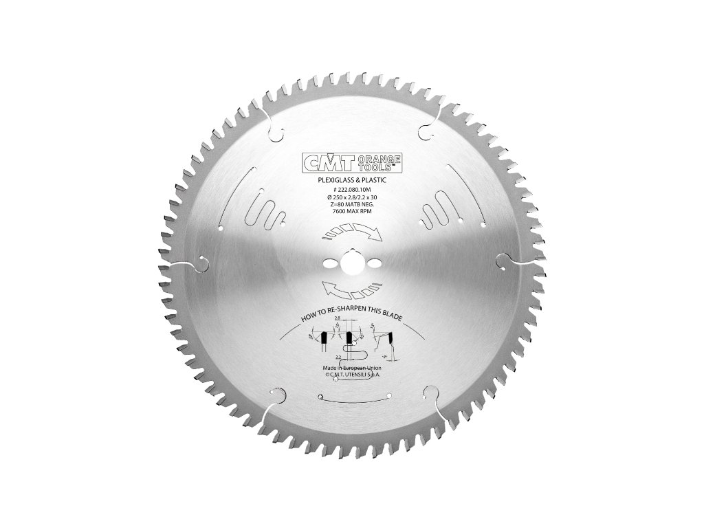 CMT Pilový kotouč pro plovoucí podlahy, PVC, plexi D300x2,8 d30 Z96 HM je osazen střídavými speciálně zbroušenými zuby (MATB) a unikátním tvrdokovem. Vhodné pro tenkostěnné plasty, plexisklo, vinyl a laminátové podlahy bez napalování okrajů řezu. Dobré výsledky také při řezání laminátů.