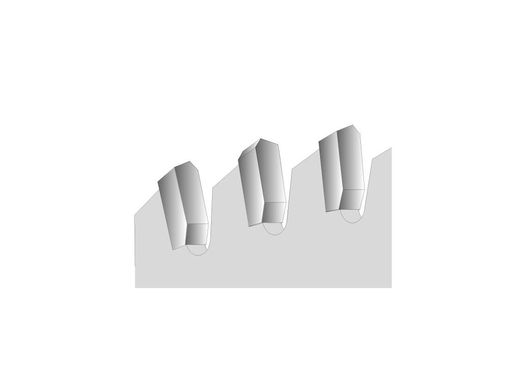 | Typ zubu: | šikmo střídavý, zbroušený zub |