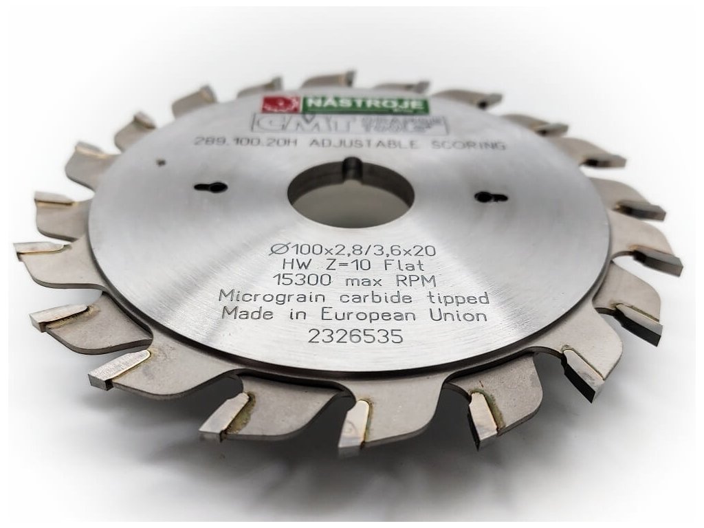 CMT Předřezový kotouč dvoudílný D100x2,8-3,6 d20 Z10+10 HM pro stroje s předřezovým agregátem pro docílení vyšší kvality řezu na spodní ploše oboustranně povrchově upravených materiálů. Vhodný na předřezání lamino desek.