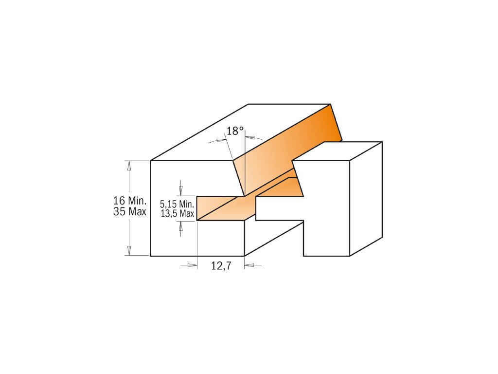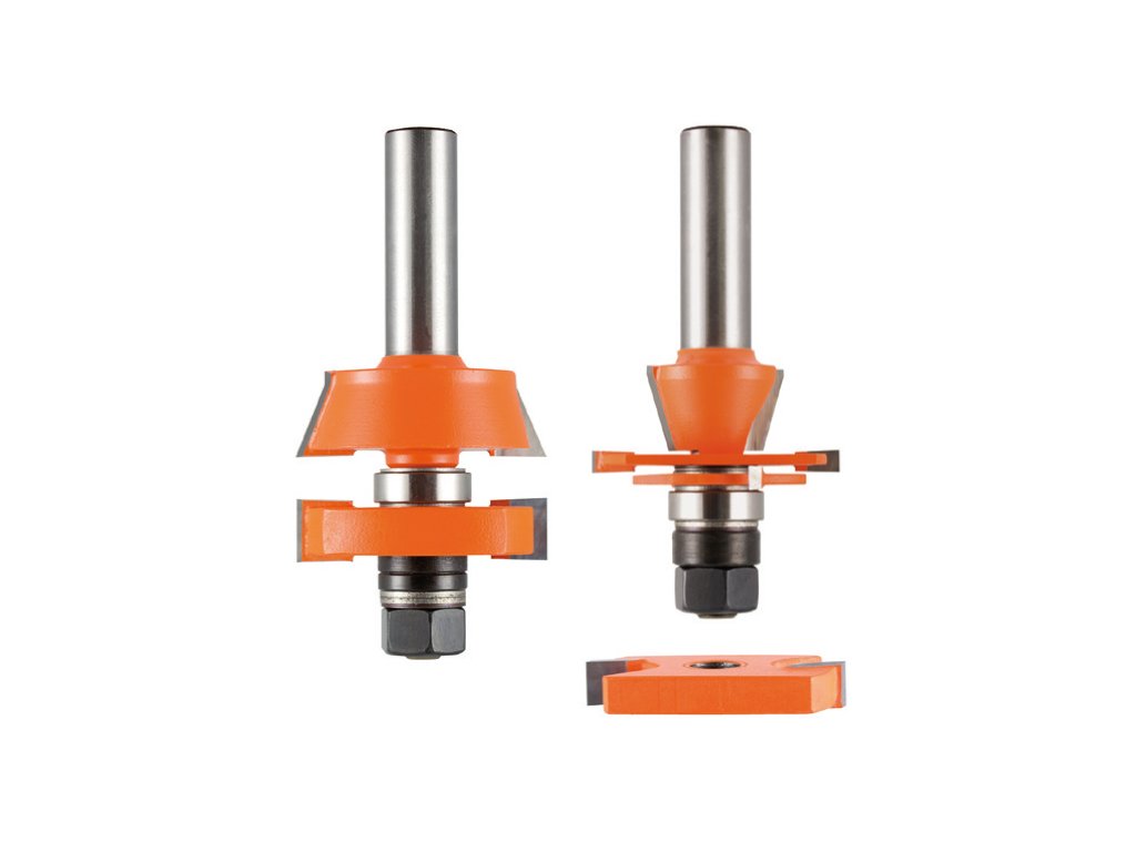 Tato nová CMT sada na rámy dvířek s plochými výplněmi, například z překližky, vytváří přesný spoj na pero a drážku se zkosenou venkovní hranou pod úhlem 18°. Pro měkké a tvrdé dřevo nebo překližku. Určeno pouze pro použití ve frézovacím stolku. Není určeno pro ruční frézování.
