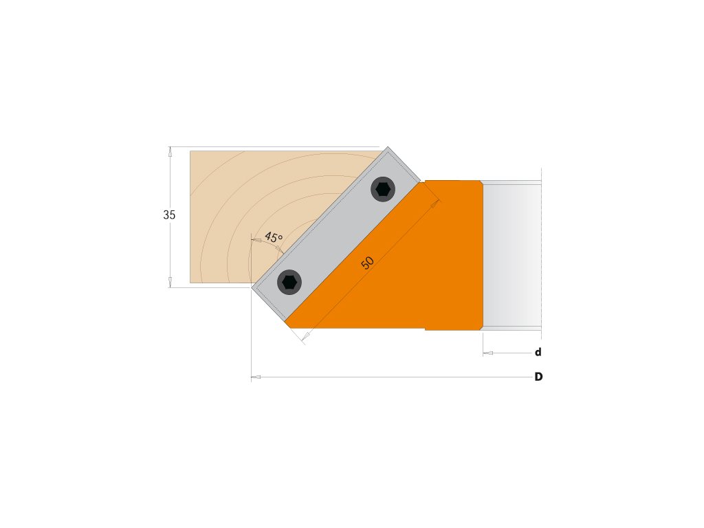 S touto úhlovou frézovací hlavou od CMT docílíte čistého a přesného sražení hran a je ideální také pro výrobu rohových spojů. Fréza je určena k použití na spodních frézkách. Výborně se hodí pro všechny typy materiálů, zejména na tvrdé dřevo, velkoplošné materiály, dýhované a laminované materiály. Upínací průměr d = 30, 40 nebo 50 mm.
