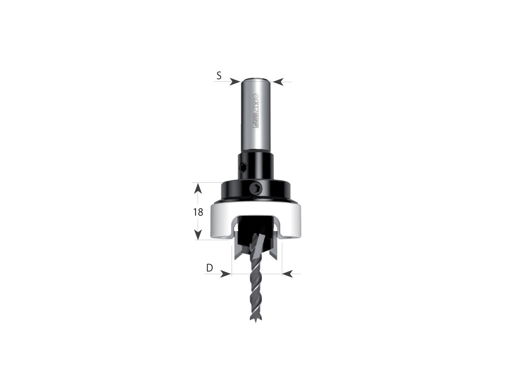 CMT vrták se záhlubníkem 90° a stop dorazem.