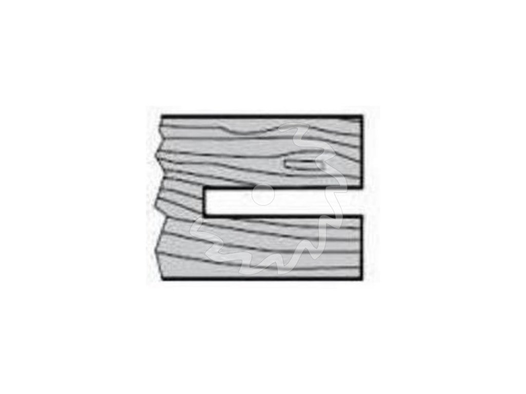 Drážkovací fréza s SK pájenými rovnými břity a předřezy s ocelovým tělem. Předřezávací zuby zvyšují kvalitu obrábění. Fréza je vhodná pro frézování masivu, překližky a laťovky. Drážkovačka je určena pro spodní frézky.