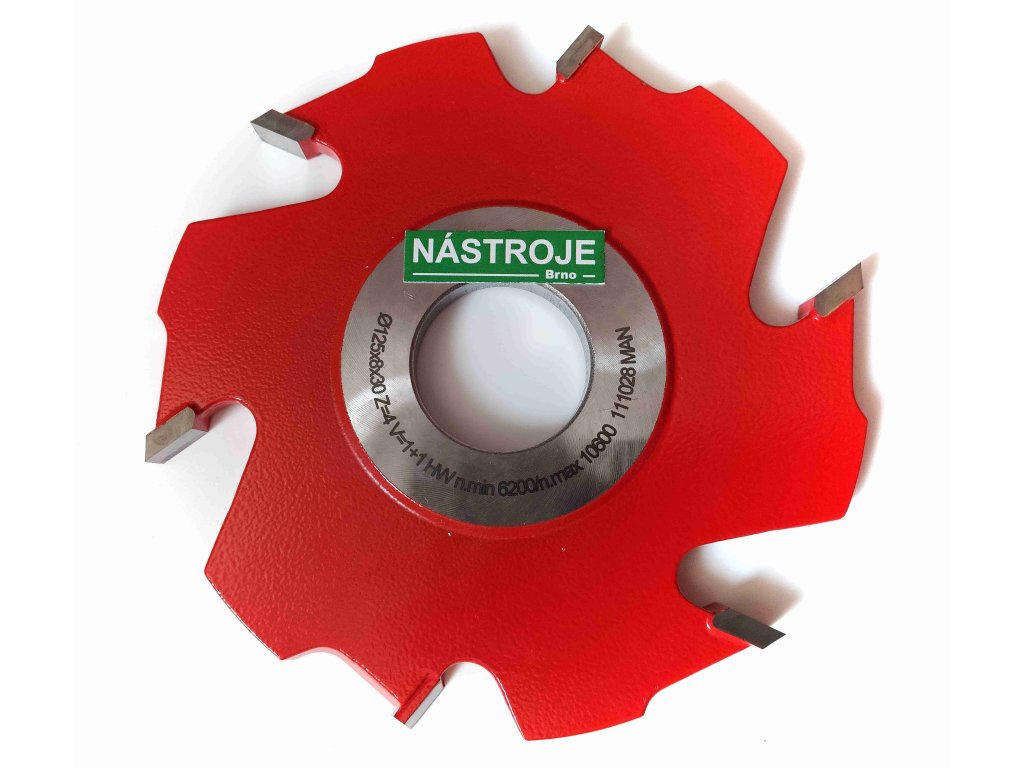 Drážkovací fréza s SK pájenými rovnými břity a předřezy s ocelovým tělem. Předřezávací zuby zvyšují kvalitu obrábění. Fréza je vhodná pro frézování masivu, překližky a laťovky. Drážkovačka je určena pro spodní frézky.