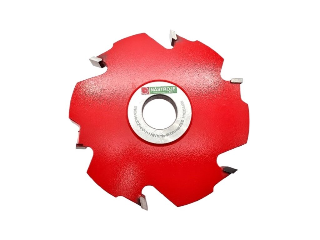 Drážkovací fréza s SK pájenými rovnými břity a předřezy s ocelovým tělem. Předřezávací zuby zvyšují kvalitu obrábění. Fréza je vhodná pro frézování masivu, překližky a laťovky. Drážkovačka je určena pro spodní frézky.