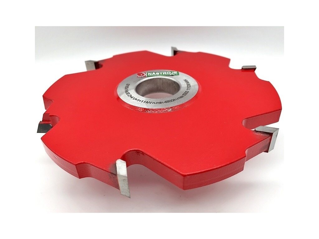Drážkovací fréza s SK pájenými rovnými břity a předřezy s ocelovým tělem. Předřezávací zuby zvyšují kvalitu obrábění. Fréza je vhodná pro frézování masivu, překližky a laťovky. Drážkovačka je určena pro spodní frézky.