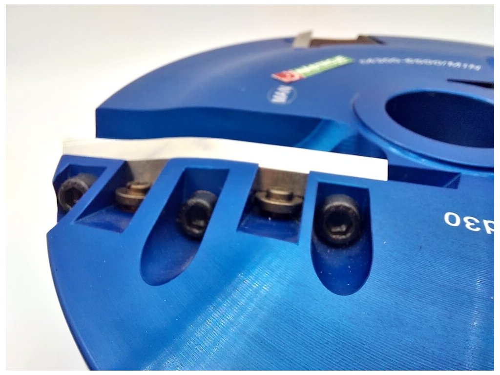 Výměnné nože: Fréza umožňuje výměnu několika sériových profilových nožů, přičemž všechny čelní a obvodové nože jsou mezi sebou zaměnitelné. To poskytuje flexibilitu při tvorbě různých profilů a usnadňuje údržbu nástroje. Čelní nože je potřeba vybrat ze tří variant: čelní nože s vlnkou, čelní nože se zkrácenou vlnkou, čelní nože šikmé. -