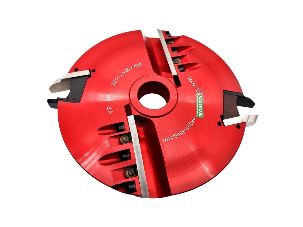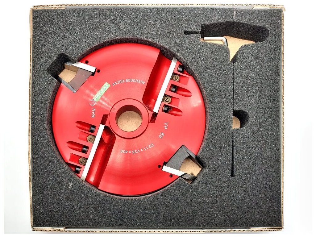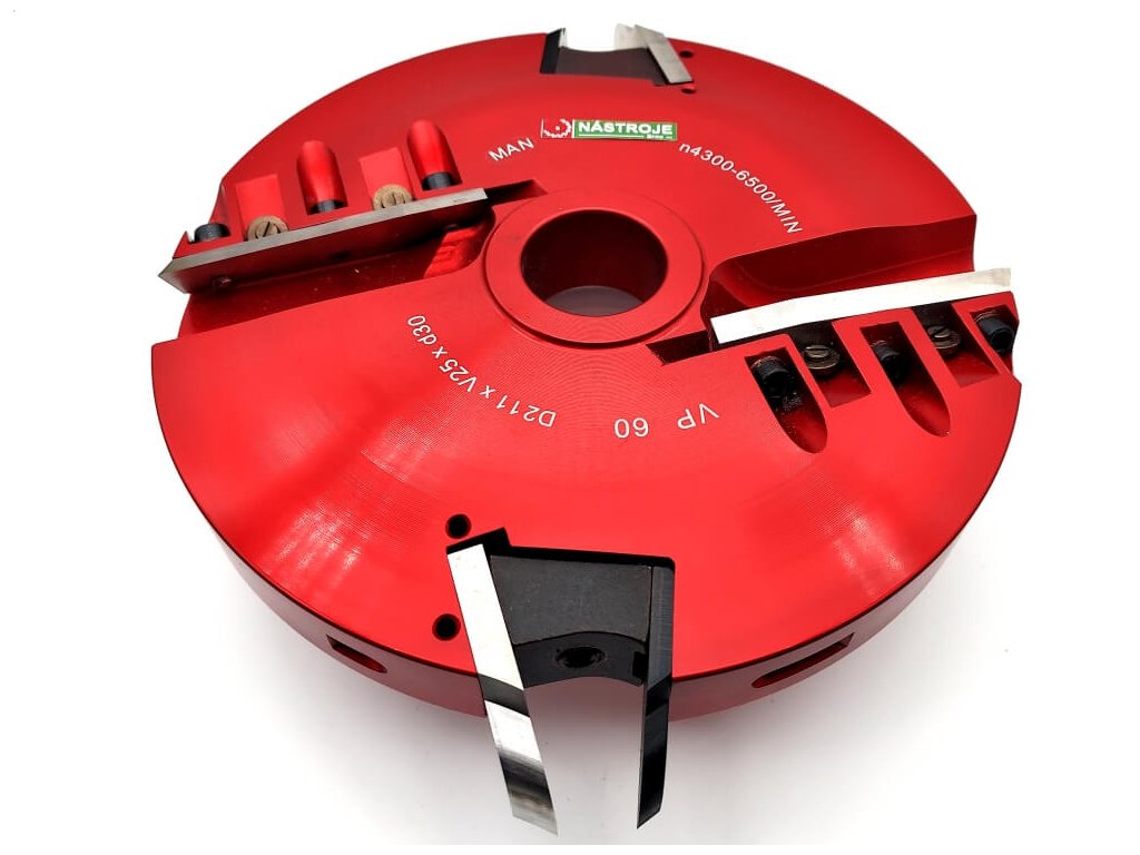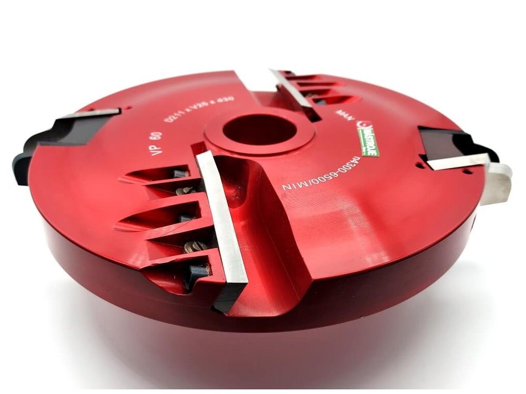 Výměnné nože: Fréza umožňuje výměnu několika sériových profilových nožů, přičemž všechny čelní a obvodové nože jsou mezi sebou zaměnitelné. To poskytuje flexibilitu při tvorbě různých profilů a usnadňuje údržbu nástroje. Čelní nože je potřeba vybrat ze tří variant: čelní nože s vlnkou, čelní nože se zkrácenou vlnkou, čelní nože šikmé. -