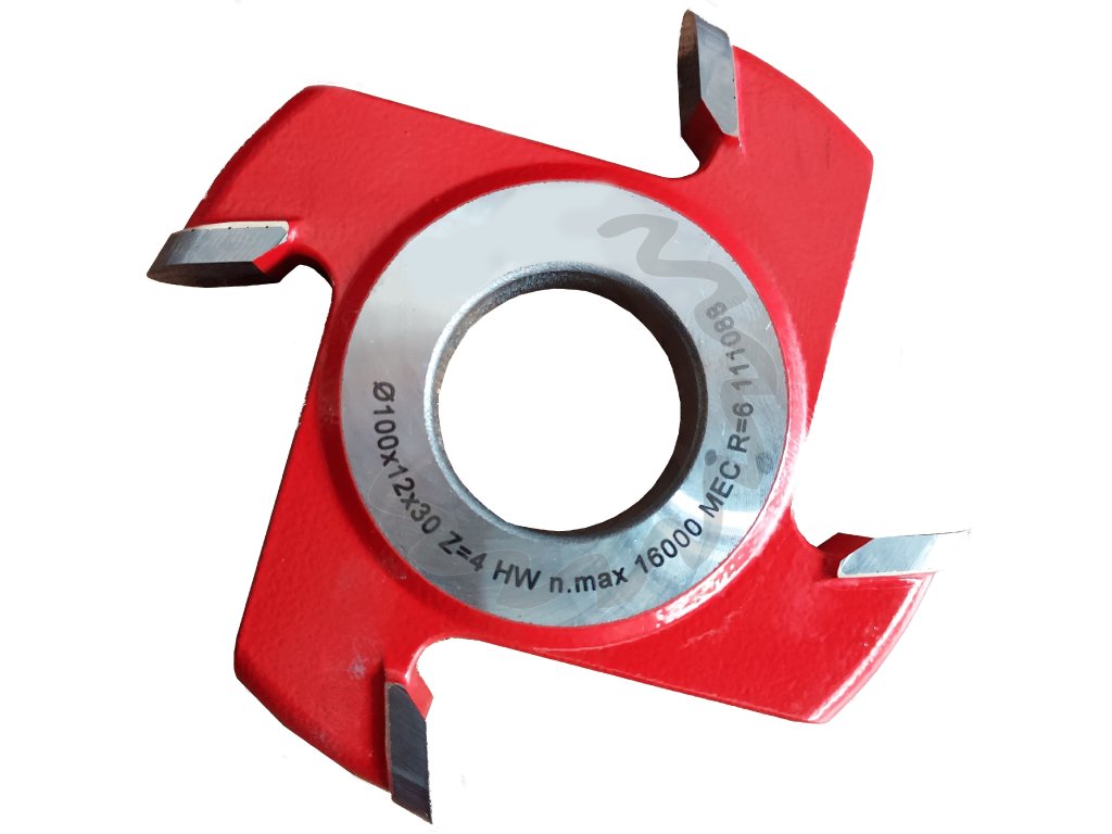 Fréza rádiusová půlkruhová vypouklá D=100 R=06 se čtyřmi pájenými zuby ze slinutého karbidu SK (HM). Fréza je určena pro strojní posuv na spodních frézkách na masiv a deskové materiály.