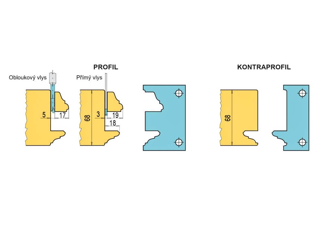 Frézovací hlava – profil a spoj domovních dveří s odřezávanou lištou a přiznanou spárou (pro masiv)