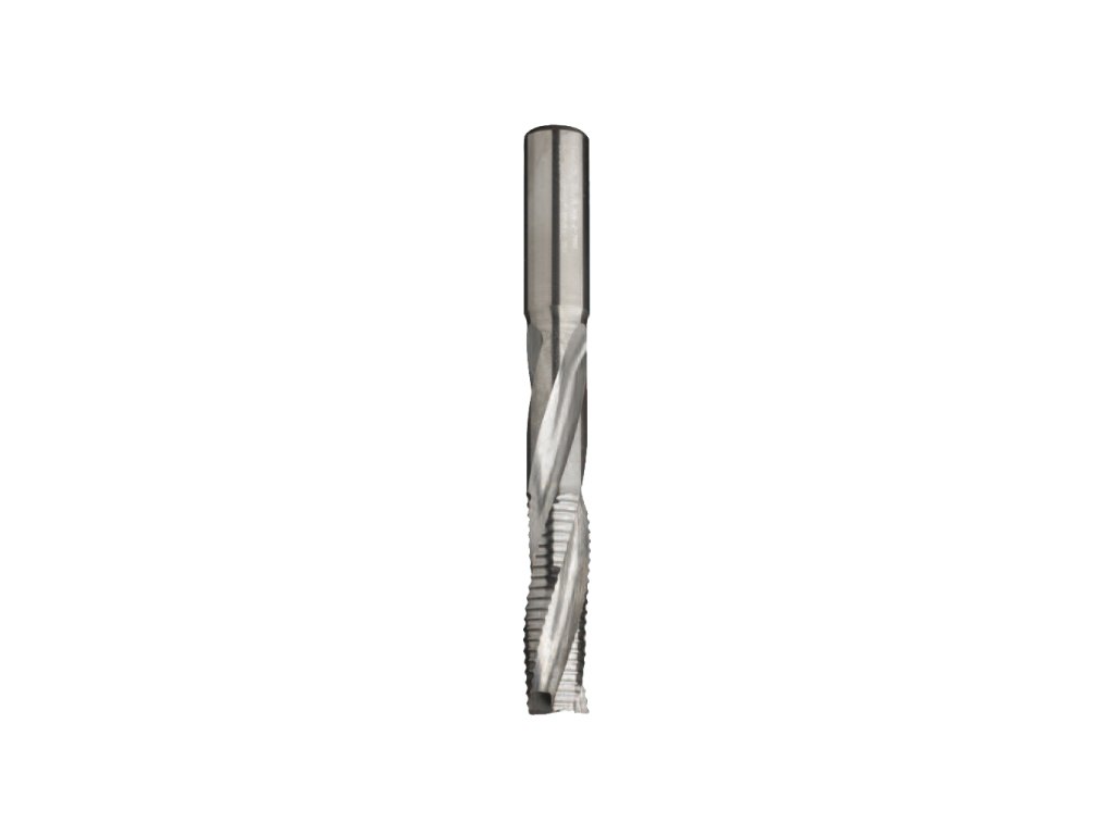 Hrubovací spirálová fréza na dveře pro rozřezávání, frézování podle šablony, formátování a další možnosti frézování v masivním dřevě a dřevěných kompozitech. Může být použito při vysokých posuvech za předpokladu velmi dobře upnutého obrobku. Lze jej použít pro frézování dveřních zámků na strojních frézách a v CNC centrech.
