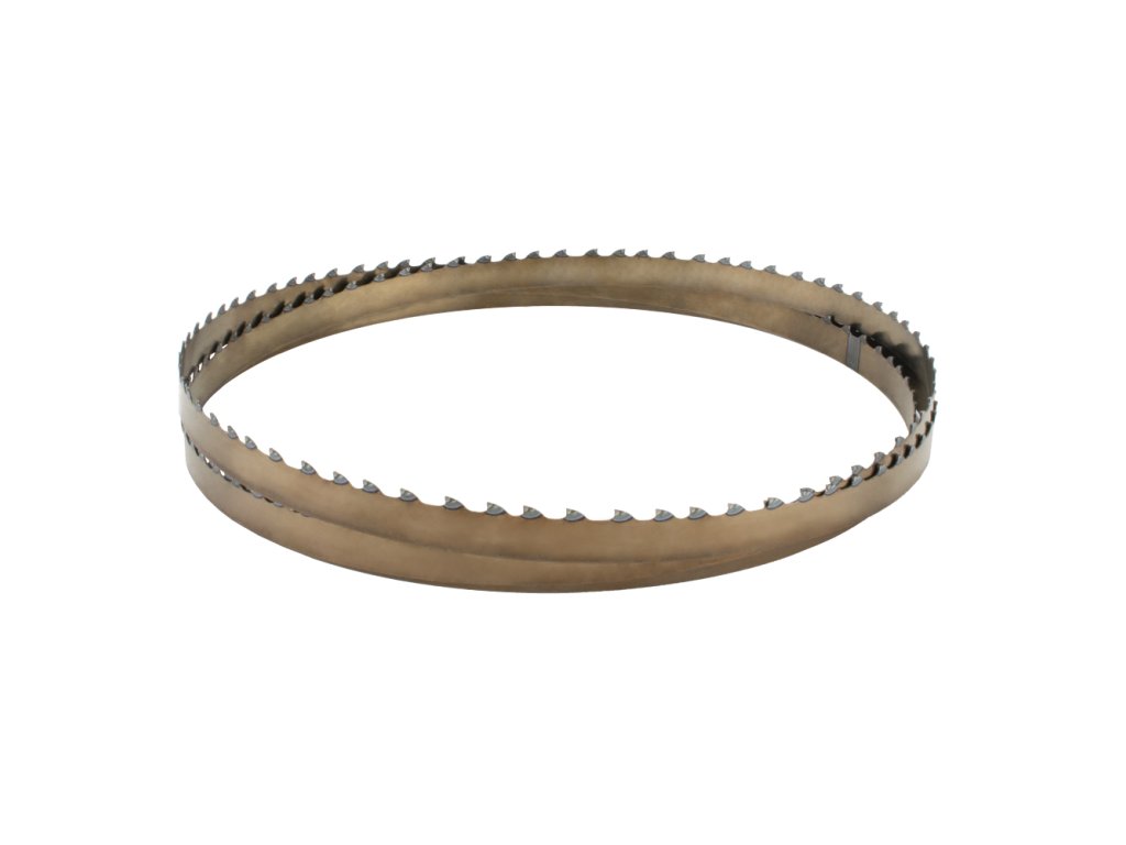 Pilový pás s tvrdokovovými zuby. Maximální výdrž ostří, perfektní pro řezání velmi tvrdého a exotického dřeva. Úzký prořez pouze 1,2 mm. Variabilní rozteč zubů snižuje vibrace pásu. O poznání čistší řez, proti klasickým rozvedeným zubům.