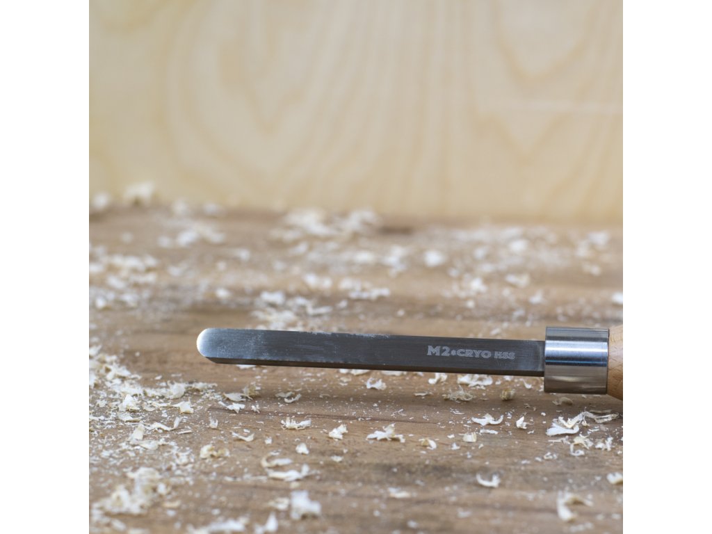 Sada je vhodná jak pro začátečníky, tak i zkušené soustružníky. Čepel z HSS oceli M2 je kryogenicky zpracovaná, což zaručuje dlouhou životnost a mnohonásobně vyšší zachování ostří než u běžných dlát. Masivní ergonomická rukojeť z bukového dřeva je pevná pro komfort a jistotu při práci.