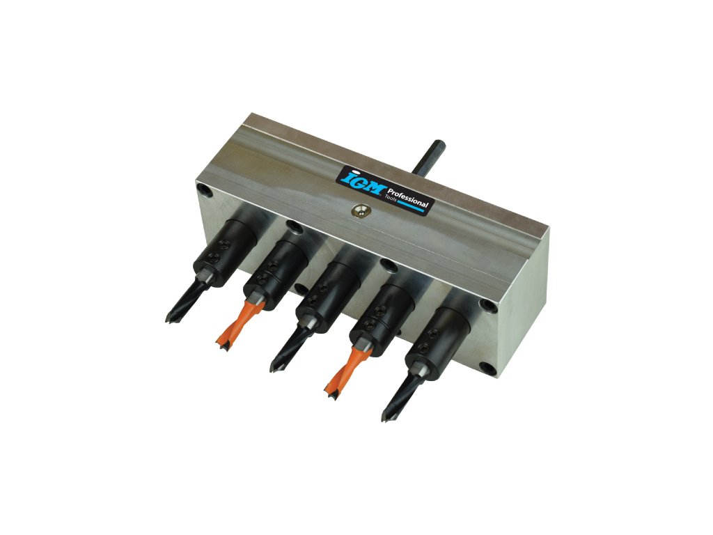 Revoluční vrtací přípravek se skládá ze stojanu a 8 typů vrtacích hlav, které lze na stojan namontovat. Můžete tak vrtak otvory pro závěsy Hettich, Blum, Mepla, Grass, FGV, pro malé závěsy 26mm, pro okenní kliky nebo použít hlavu s 5 vřeteny s roztečí 32mm pro vrtání děr pro kolíky či nosiče polic. Použití s ruční vrtačkou nebo na stojanových vrtačkách. Pro mazání použijte olej Mobil SHC100.