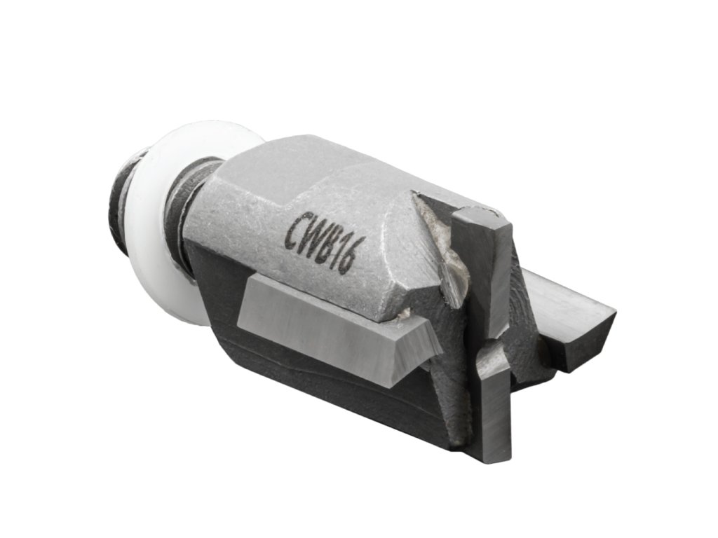 Vrtací fréza z tvrdokovu pro frézování dlabů zámků do dřevěných dveří pomocí přípravku na dveřní zámky.
