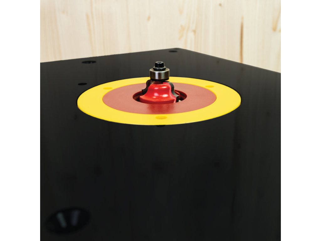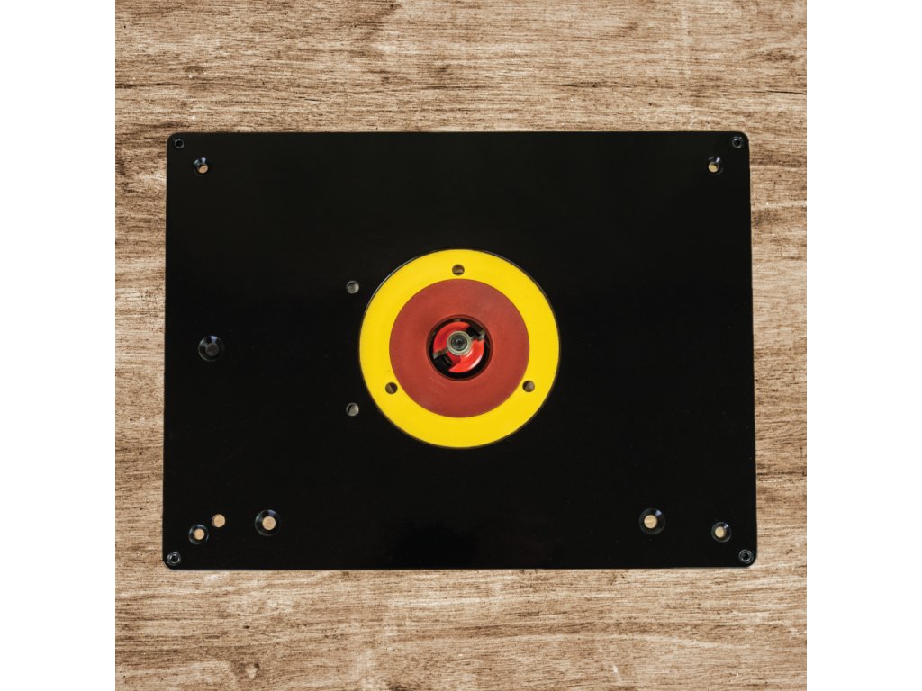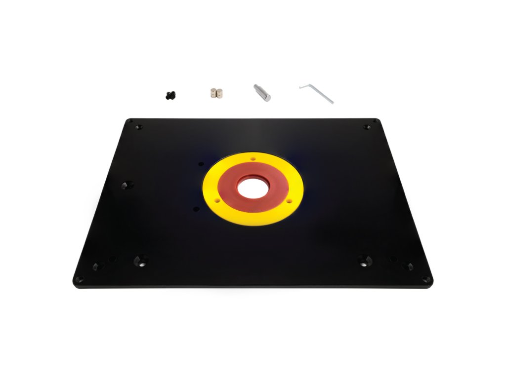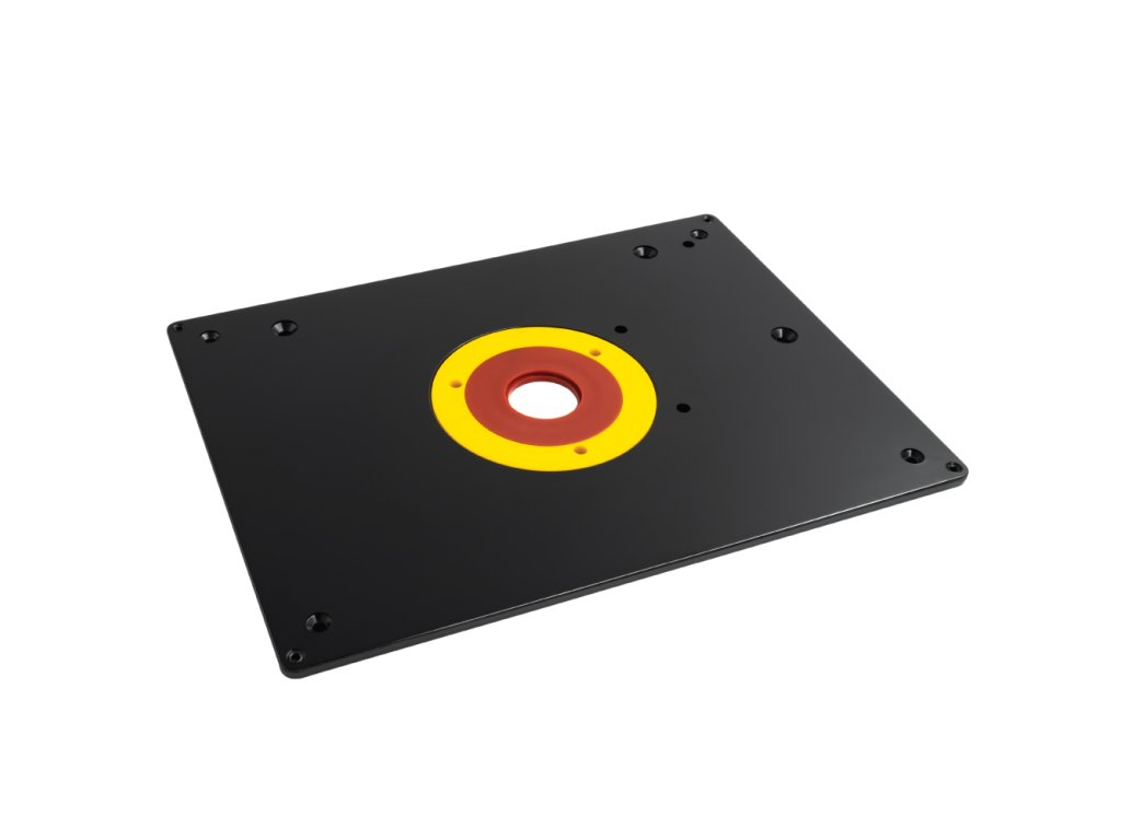Středová frézovací deska je bez otvorů pro upnutí horní frézky a je vyrobena z 6 mm hladkého plastu v černé barvě. Je vybavena 4-mi vyrovnávacími šrouby pro ustavení do roviny s pracovní deskou frézovacího stolku. Dodávaná se 2-mi odnímatelnými středovými kroužky pro upnutí různých velikostí stopkových fréz o průměru do 30 mm, do 66 mm. Maximální středový otvor desky je 98 mm.
