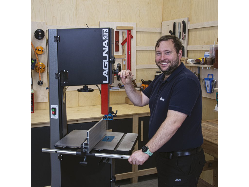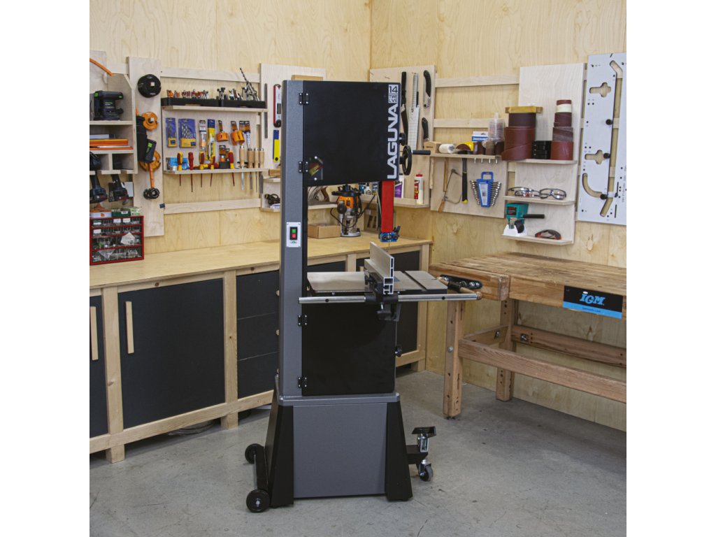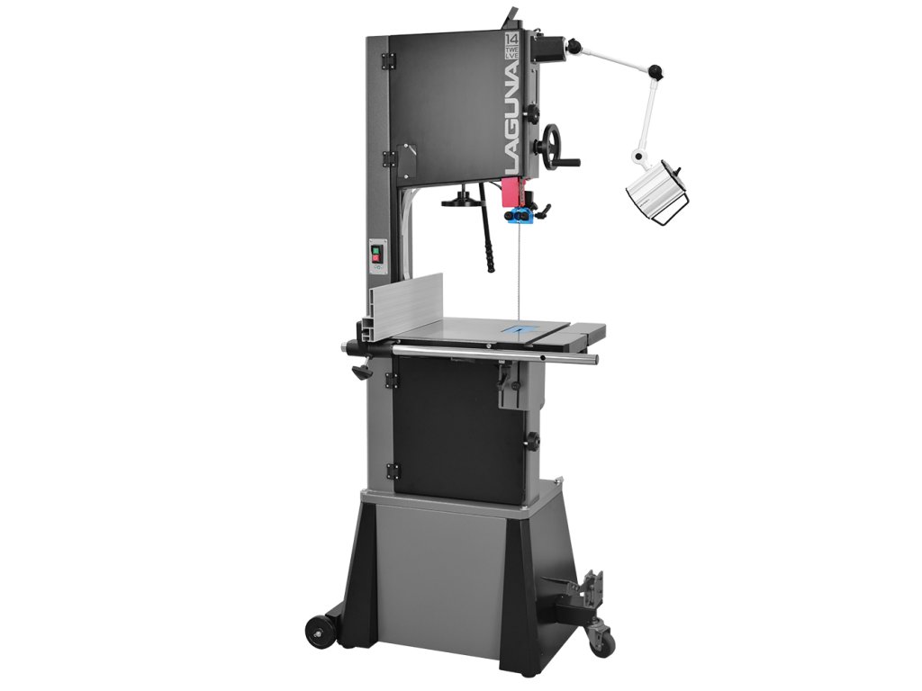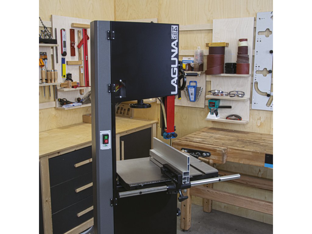 Profesionální pásová pila na dřevo IGM Laguna 1412 s robustním rámem, keramickými vodítky a naklápěcím stolem zajišťuje přesné řezy do výšky 330 mm. Hladký chod zajišťují vyvážená litinová kola.