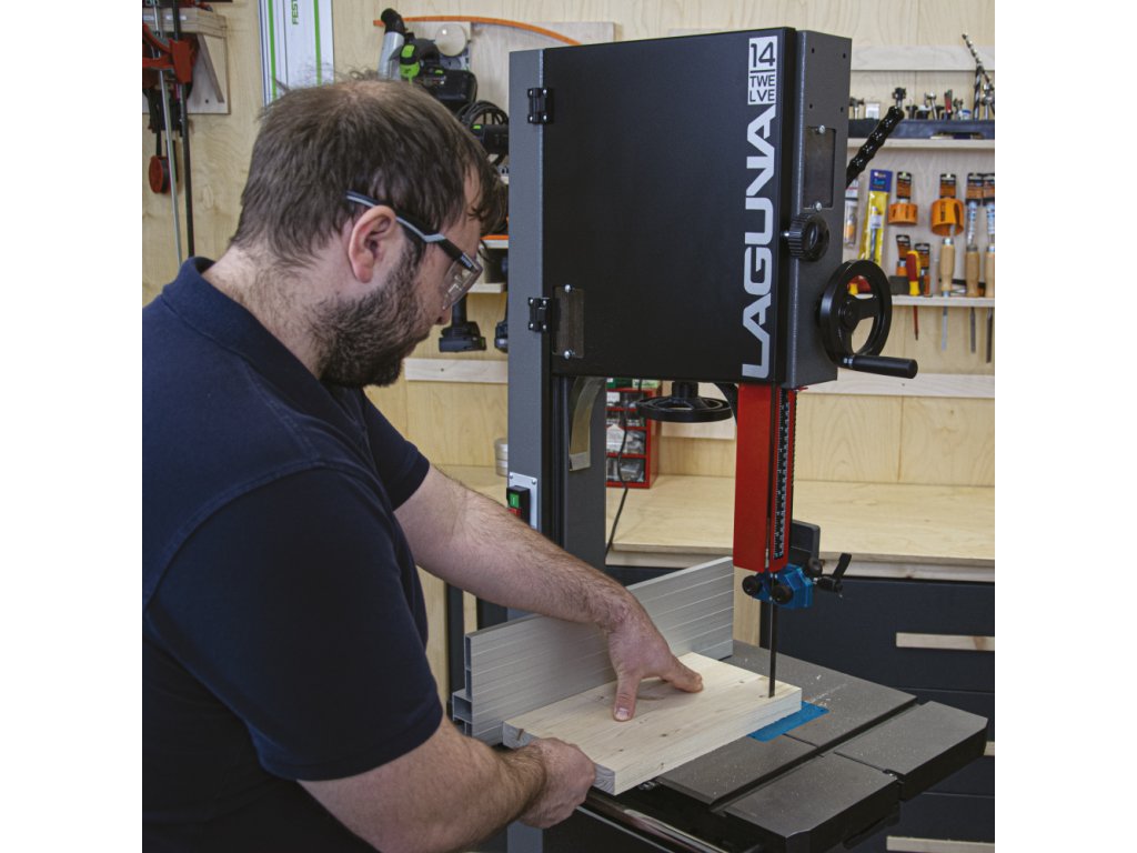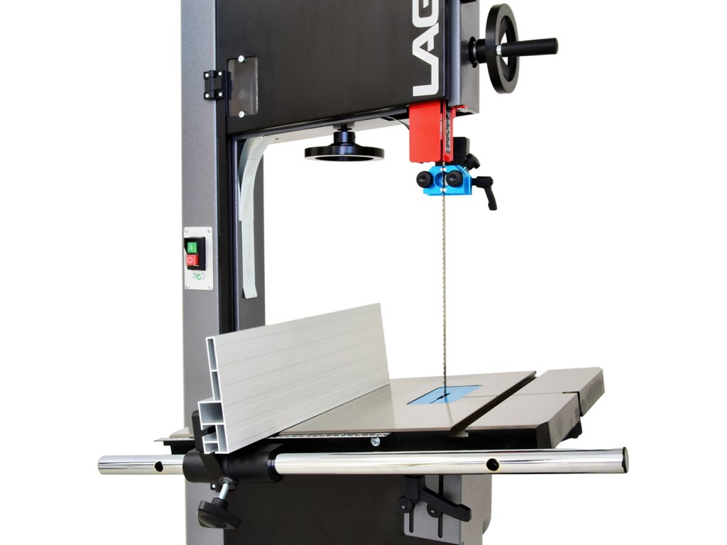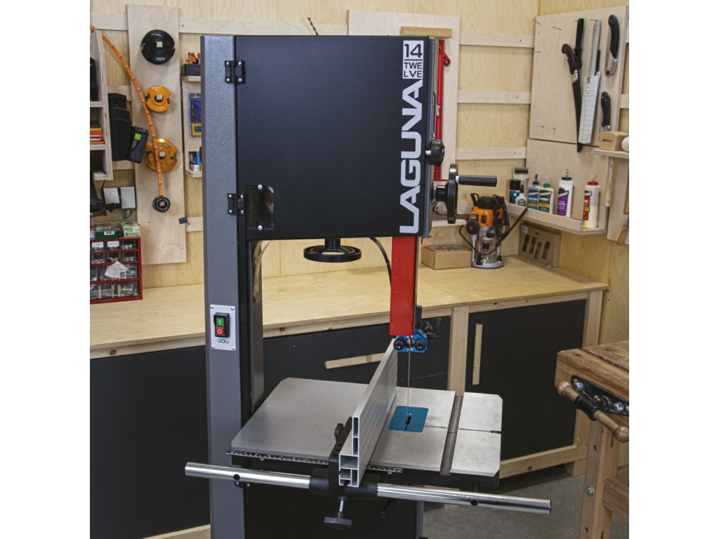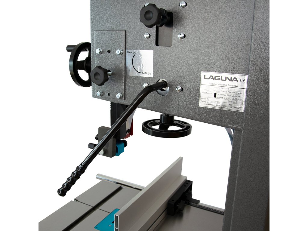 Pila je vybavena odolnými keramickými vodítky pilového pásu nad a pod stolem, které poskytují velmi přesné vedení. Tato vodítka zaručují ideální kvalitu řezu a prodlužují životnost pilového pásu. Průhledy v horní části stroje vám umožní kontrolovat napnutí nebo uvolnění pásu za chodu. Praktickým prvkem je také páka na zadní straně pily pro rychlé uvolnění pásu. Pila IGM Laguna 1412 se odlišuje proti konkurenci především promyšlenou konstrukcí, která umožňuje řez vysoký až 330 mm.