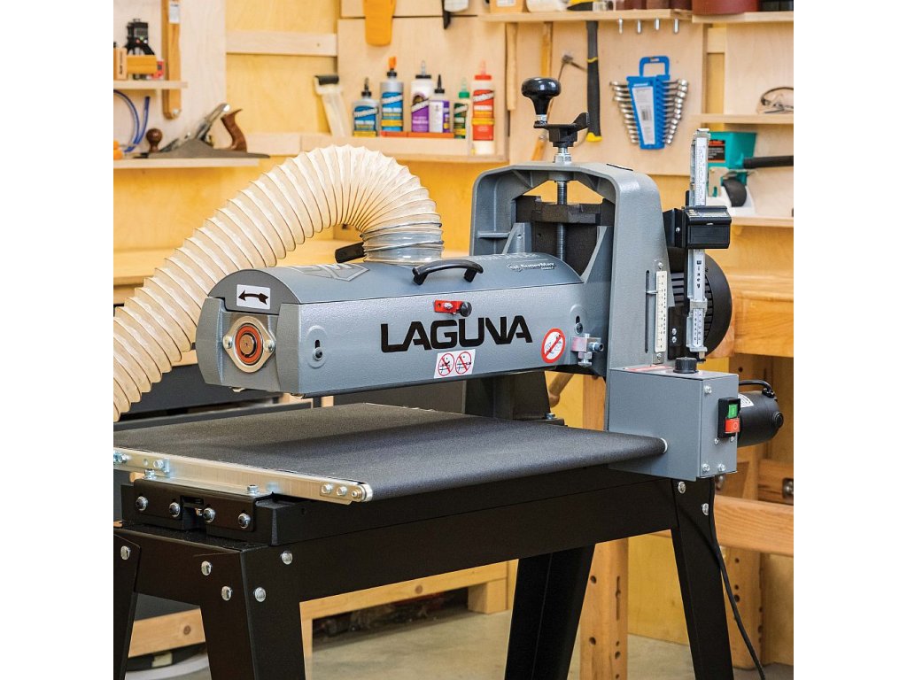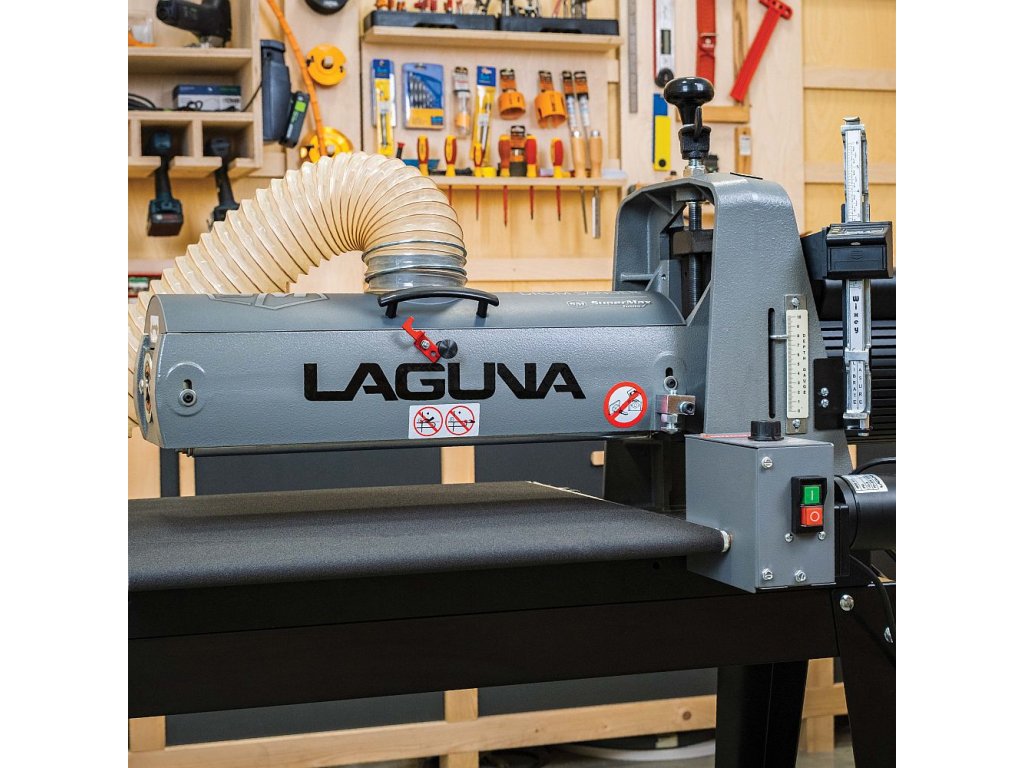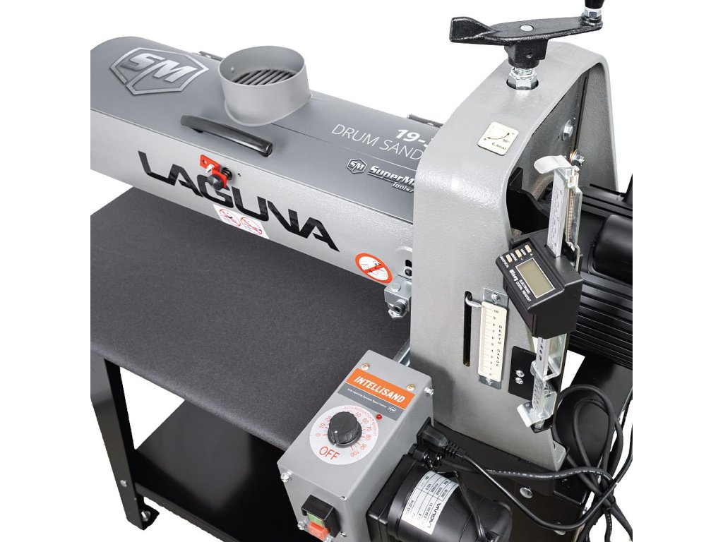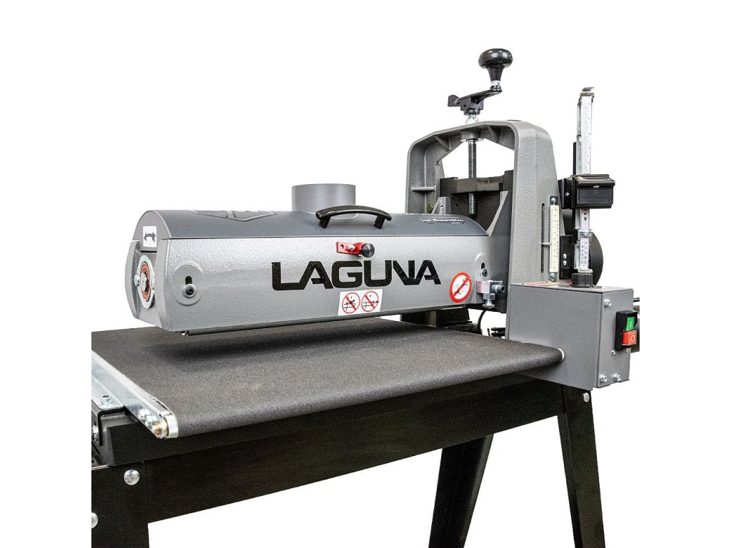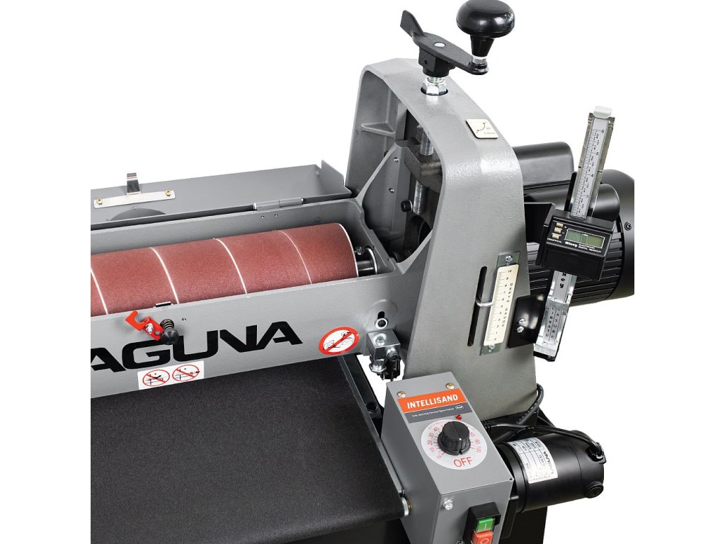 Válcová bruska IGM Laguna SuperMax byla navržena s pomocí truhlářských mistrů pro náročné dílny, plynulý provoz, úzké či široké dílce, přesné broušení a rychlé nastavení. Najdete na ní proto několik prvků, které profesionálové léta postrádali na trhu s dřevoobráběcími stroji. Jednou z těchto výhod je například jednoduché nastavení výšky broušení. Přítlačné ložisko pod pákou a matice nad ní zabraňují pohybu válce při broušení. Mechanismus nastavení výšky nemá vůli ani sklon, což umožňuje snadnější a plynulejší nastavení výšky. Přesný úběr si ověříte pomocí vestavěného digitálního displeje, který vyobrazuje výšku válce v desetinách mm a umožňuje tak přesně odečíst hodnotu.