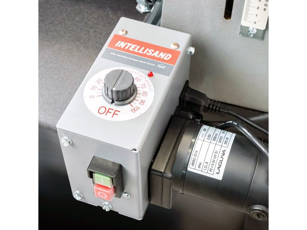 Technologie Intellisand automaticky reguluje rychlost posuvu, pokud zvolíte příliš velký úběr materiálu. Intellisand rychlost posuvu sníží, čímž se zabrání přetížení motoru a nedojde tak k napalování, vytrhávání nebo poškození obrobku. Pás posuvu s drsným povrchem pevně uchopí surové dřevo, díky čemuž můžete brousit velmi krátké nebo tenké dílce. Bruska disponuje patentovaným systémem upnutí brusného pásu, které zabraňuje jeho uvolnění a překrývání. Napínání je tak velmi jednoduché a rychlé. Není potřeba speciálních nástrojů!