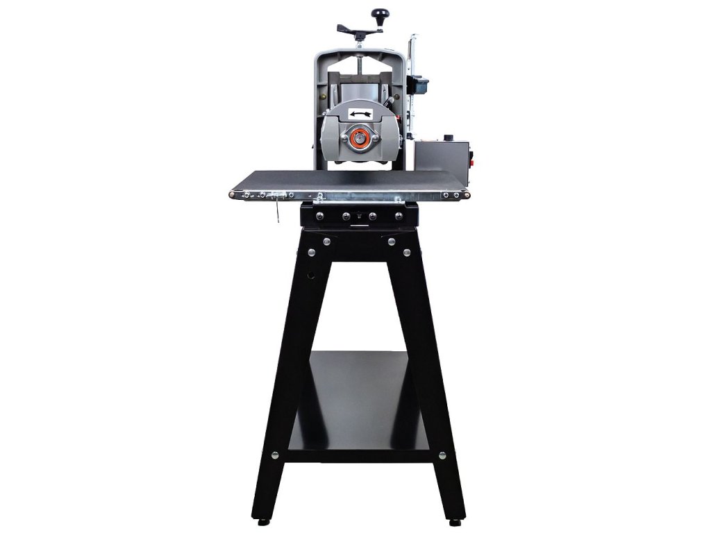 Přesnost podél šířky celého dílce je zaručena nejen tuhou litinovou konstrukcí, ale také přesným paralelním srovnáním mezi válcem a posuvným pásem. Bruska je vybavená pákou pro rychlé přenastavení, kterou využijete při broušení širokých dílců. Páka lehce přizvedne posuvný stůl, čímž zamezí vzniku rýh na části dílce přesahující přes válec. Samostatný motor pásu posuvu je umístěn na zadní straně brusky a pás je tak spíše tažen, než tlačen. Pás posuvu s abrazivním protiskluzovým povrchem je navržený tak, aby dostatečně podpíral dílec širší než 482 mm (na dva průtahy). Dokonale zploštělé ocelové vedení pásu posuvu, vyztužené čtyřmi ocelovými průřezy, zaručuje rovinnost s odchylkou méně než 0,25 mm po celé šířce brusky.