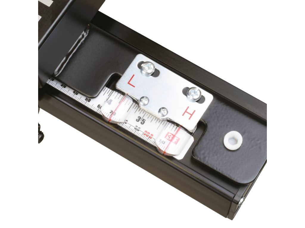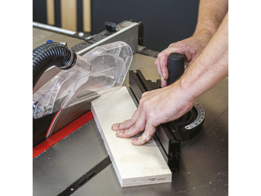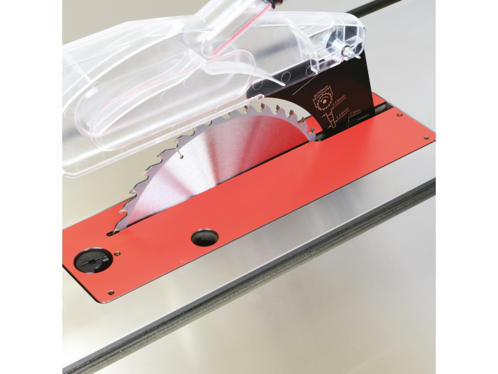 Na první pohled pila zaujme velkým litinovým pracovním stolem, který poskytuje dostatečně velkou plochu při řezání velkých formátů. Pila je dodávána se zadním prodloužením stolu o dalších 500 mm, které oceníte při řezání delších dílců. Součástí pily je masivní podélné pravítko s rukojetí z měkčeného plastu, které lze velmi lehce posouvat a zamknout ve zvolené pozici. Hliníkový profil podélného pravítka lze překlopit o 90 stupňů pro snazší řezání tenkých dílců. Díky lupě na podélném pravítku je stupnice na vodicím profilu vždy snadno čitelná a umožní vám dokonale přesnou práci v horizontální i vertikální poloze hliníkového profilu. V litinovém stole využijete dvě praktické T-drážky pro použití úhlového pravítka z obou stran pilového kotouče.