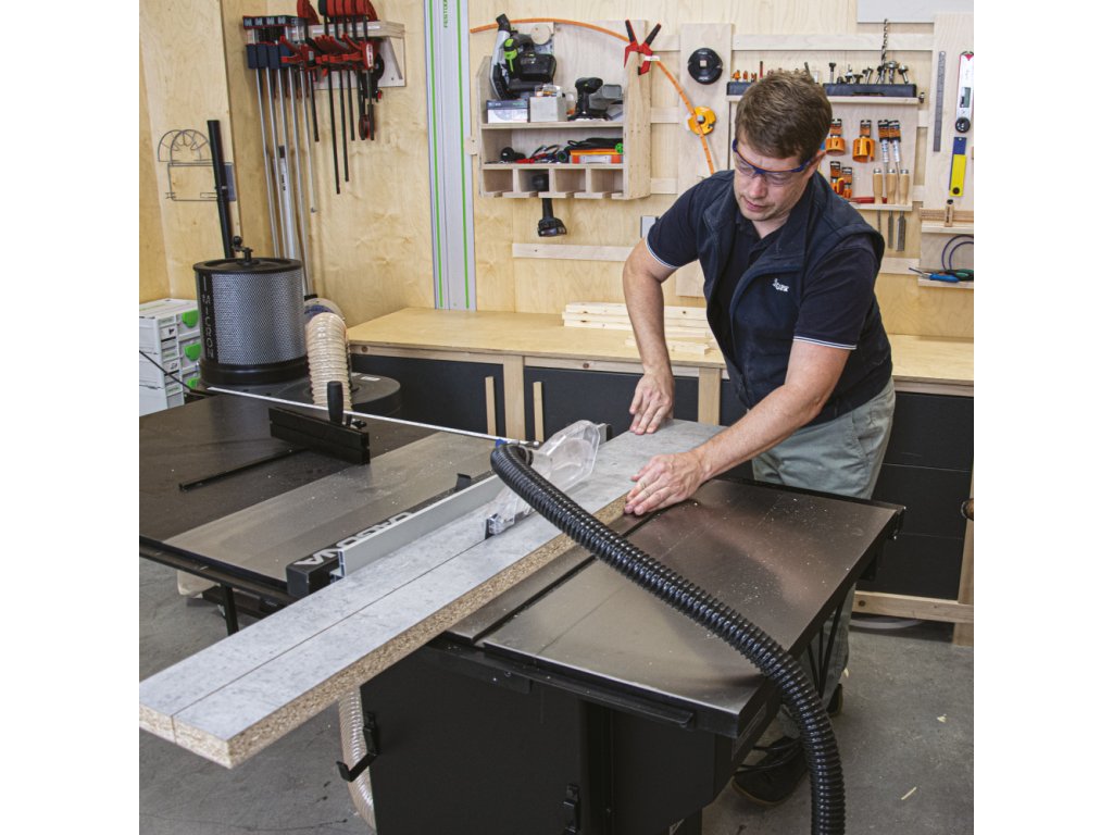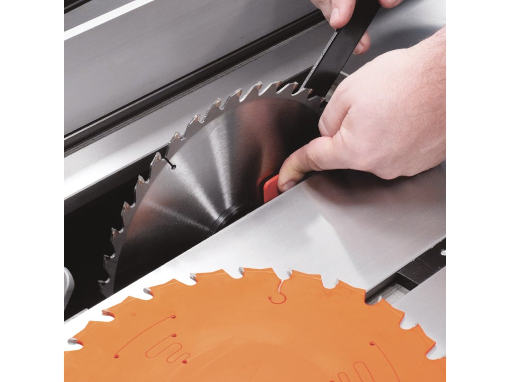 Pila má mnoho chytrých řešení. Například rychloupínací systém pro jednoduché vyjmutí rozvíracího klínu jedním pohybem nebo páčku pro aretaci hřídele, která vám umožní rychlé sejmutí a nasazení kotouče. Pro boční podélné pravítko, úhlové pravítko, klíč pro výměnu pilového kotouče a podavač materiálu jsou k dispozici úložná místa. Nástroje tak budete mít vždy po ruce. Stroj má v základní výbavě kola pro přesun po menší dílně. Celý litinový stůl lze jednoduše srovnat do roviny.