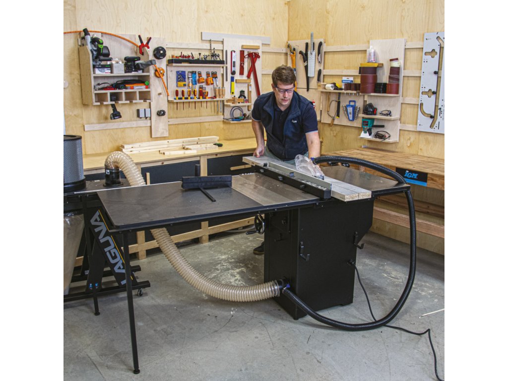 Profesionální kotoučová pila na dřevo do menší dílny IGM Laguna Fusion2 s digitálním ukazatelem úhlu řezu, vhodná pro drážkovací kotouče DADO, 13A jistič.