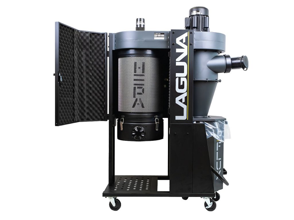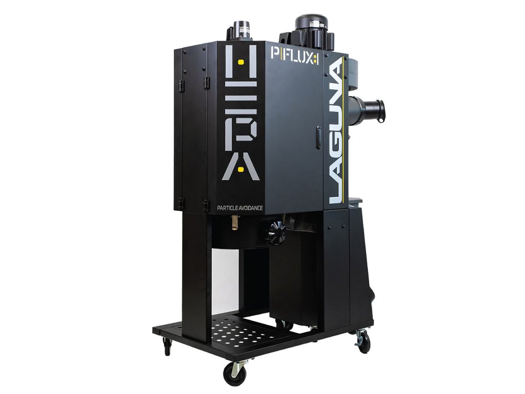 PFlux1 je vysoce výkonný cyklonový odsavač z řady IGM Laguna Flux, zaručující bezkonkurenční odsávací výkon, vysoký komfort a maximální efektivitu odsávání. Vysoce účinný HEPA filtr je vybavený samostatným motorem pro automatické čistění, které se spouští každých 10 minut, a zajišťuje tak maximální komfort a vysoký výkon i při celodenním provozu. Čistění lze spustit i ručně stisknutím tlačítka na ovládacím panelu stroje nebo dálkovém ovladači. Odklopné kryty filtru mají na vnitřní straně akustickou pěnu, která účinně reguluje hlučnost.