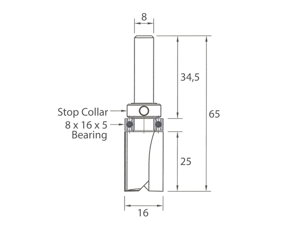 IGM M112 Drážkovací fréza s ložiskem - D16x25 L65 S=8 HW pájená