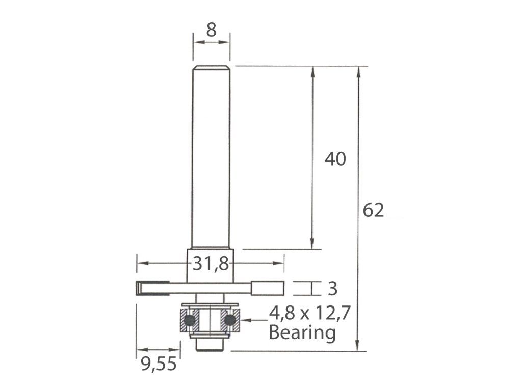 Talířová fréza s ložiskem je určena především pro vytvoření drážky do hrany materiálu. Stejnou hloubku drážky zajištuje kuličkové ložisko, které je na konci nástroje.