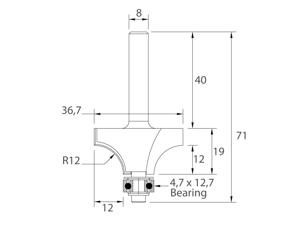 IGM M138 Zaoblovací fréza vydutá - R12 D36,7x19 L71 S=8 HW
